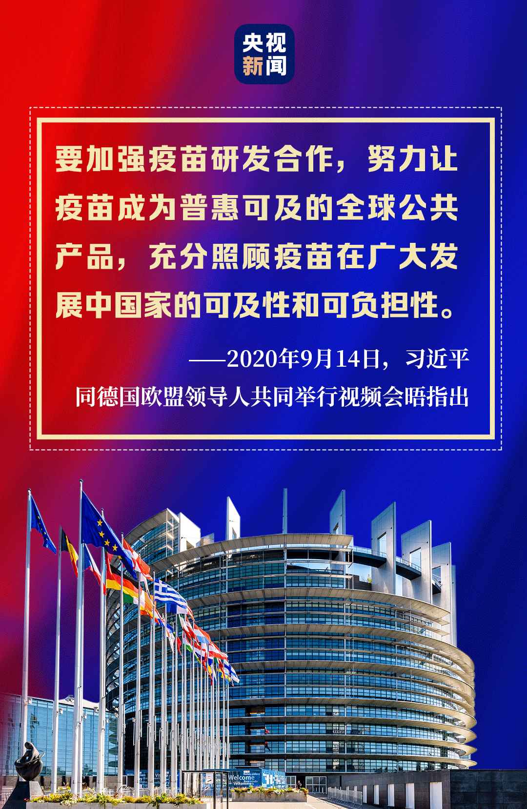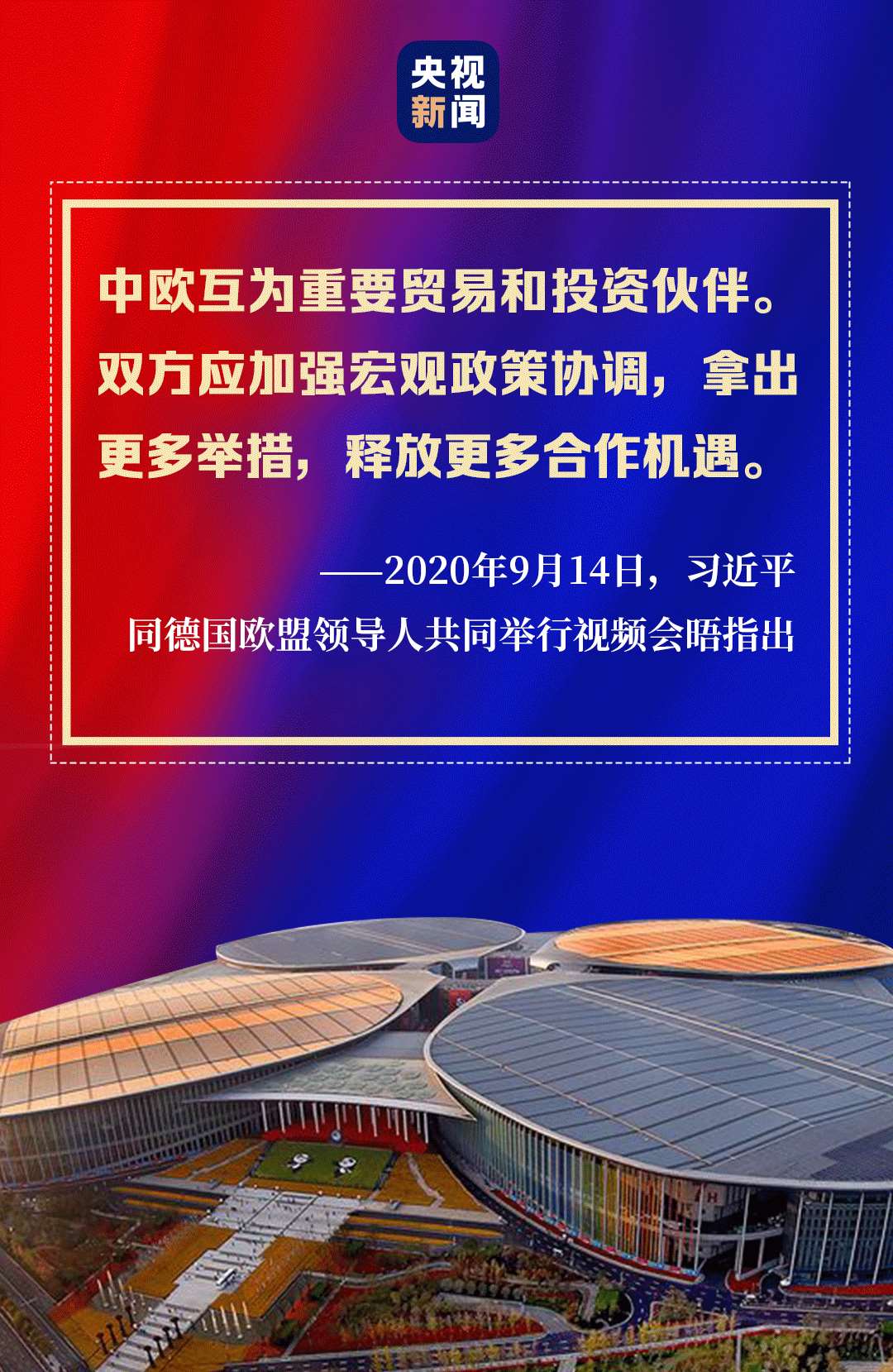 9月14日,習近平主席在北京同歐盟輪值主席國德國總理默克爾、歐洲理事會主席米歇爾、歐盟委員會主席馮德萊恩共同舉行會晤,會晤以視頻方式舉行。
