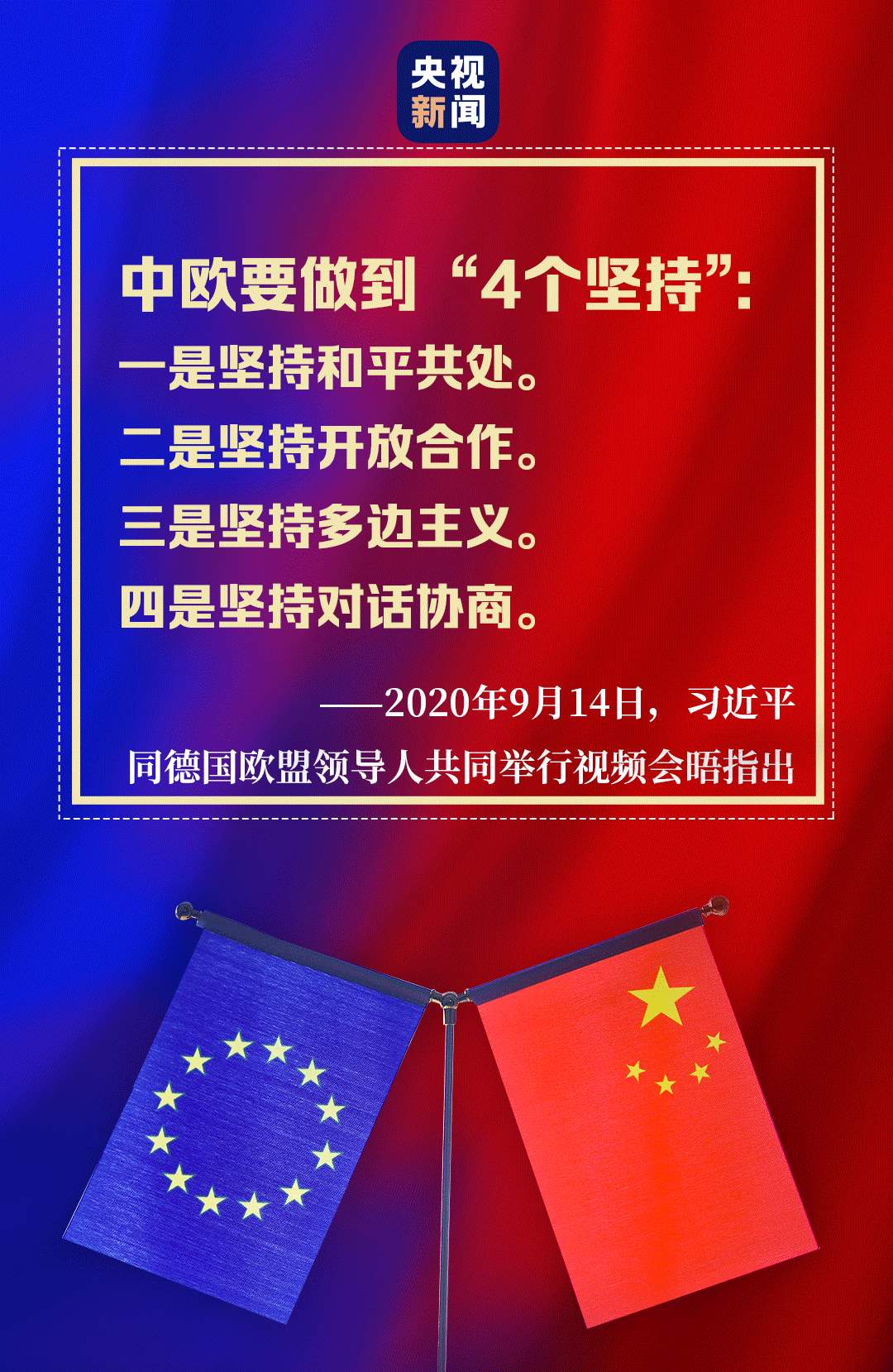“后疫情時代”中歐關(guān)系如何發(fā)展,習近平主席的“4個堅持”向世界表明了中國立場、中國態(tài)度。