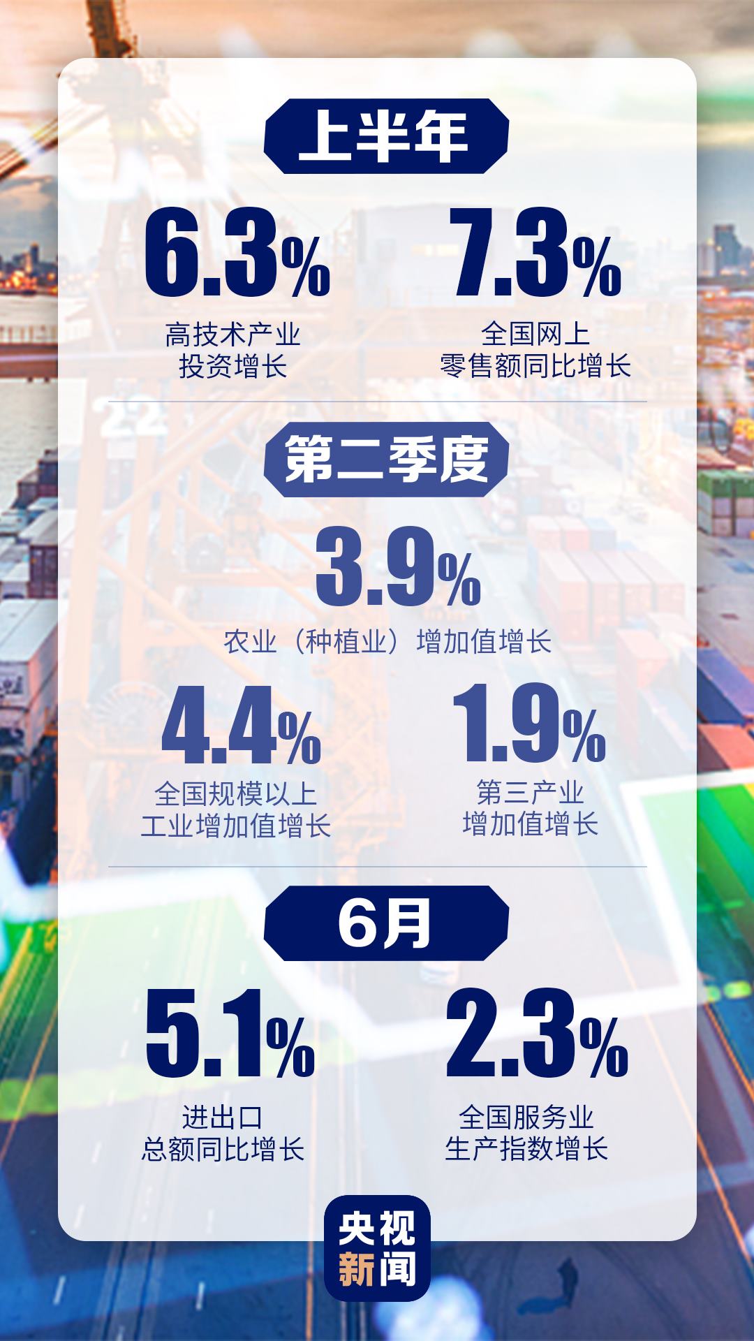 上半年我國經(jīng)濟先降后升,二季度經(jīng)濟增長由負(fù)轉(zhuǎn)正,主要指標(biāo)恢復(fù)性增長,經(jīng)濟運行穩(wěn)步復(fù)蘇,基本民生保障有力,市場預(yù)期總體向好,社會發(fā)展大局穩(wěn)定。
