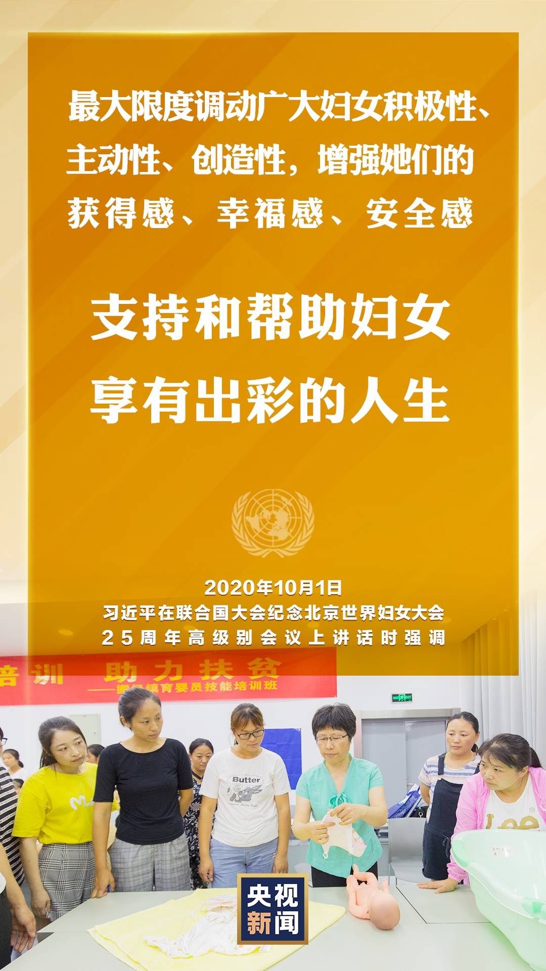 國(guó)家主席習(xí)近平10月1日在聯(lián)合國(guó)大會(huì)紀(jì)念北京世界婦女大會(huì)25周年高級(jí)別會(huì)議上通過(guò)視頻發(fā)表重要講話。就如何切實(shí)保護(hù)婦女權(quán)益,習(xí)近平提出中國(guó)主張。