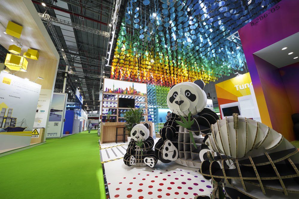 △在國家會展中心(上海)西入口處,吉祥物熊貓“進寶”歡迎進博會各國嘉賓。