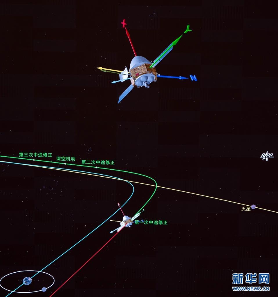 ——軌道修正,讓天問飛得更穩(wěn)。天問一號先后完成了四次中途軌道修正,對3000N發(fā)動機及120N、25N推力器的在軌性能、工作模式進行了全面驗證。