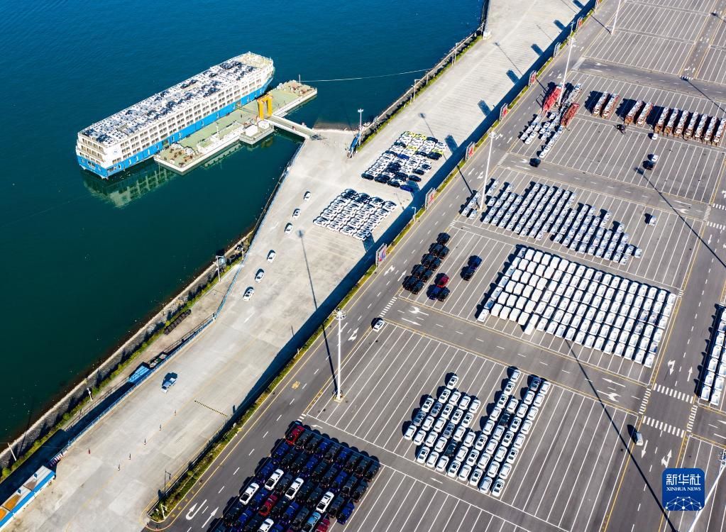 這是三峽庫(kù)區(qū)湖北省宜昌市秭歸縣秭歸港車(chē)輛分撥轉(zhuǎn)運(yùn)現(xiàn)場(chǎng)(2020年11月13日攝,無(wú)人機(jī)照片)。新華社發(fā)(鄭家裕攝)