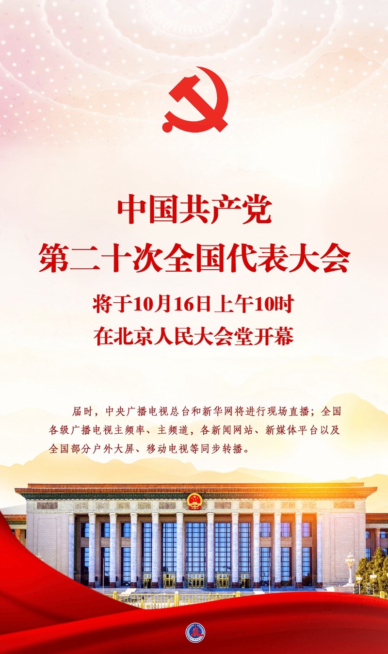黨的二十大將于16日在京舉行 廣播電視新聞網(wǎng)站現(xiàn)場直播