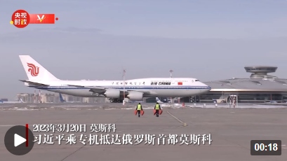 當?shù)貢r間3月20日下午,國家主席習近平乘專機抵達俄羅斯首都莫斯科。