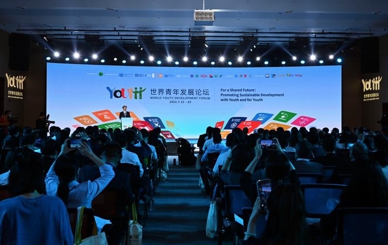 △2022年7月21日,世界青年發(fā)展論壇在北京開幕。100多位中外嘉賓和100多個國家約2000名青年代表通過線上線下方式參加會議。