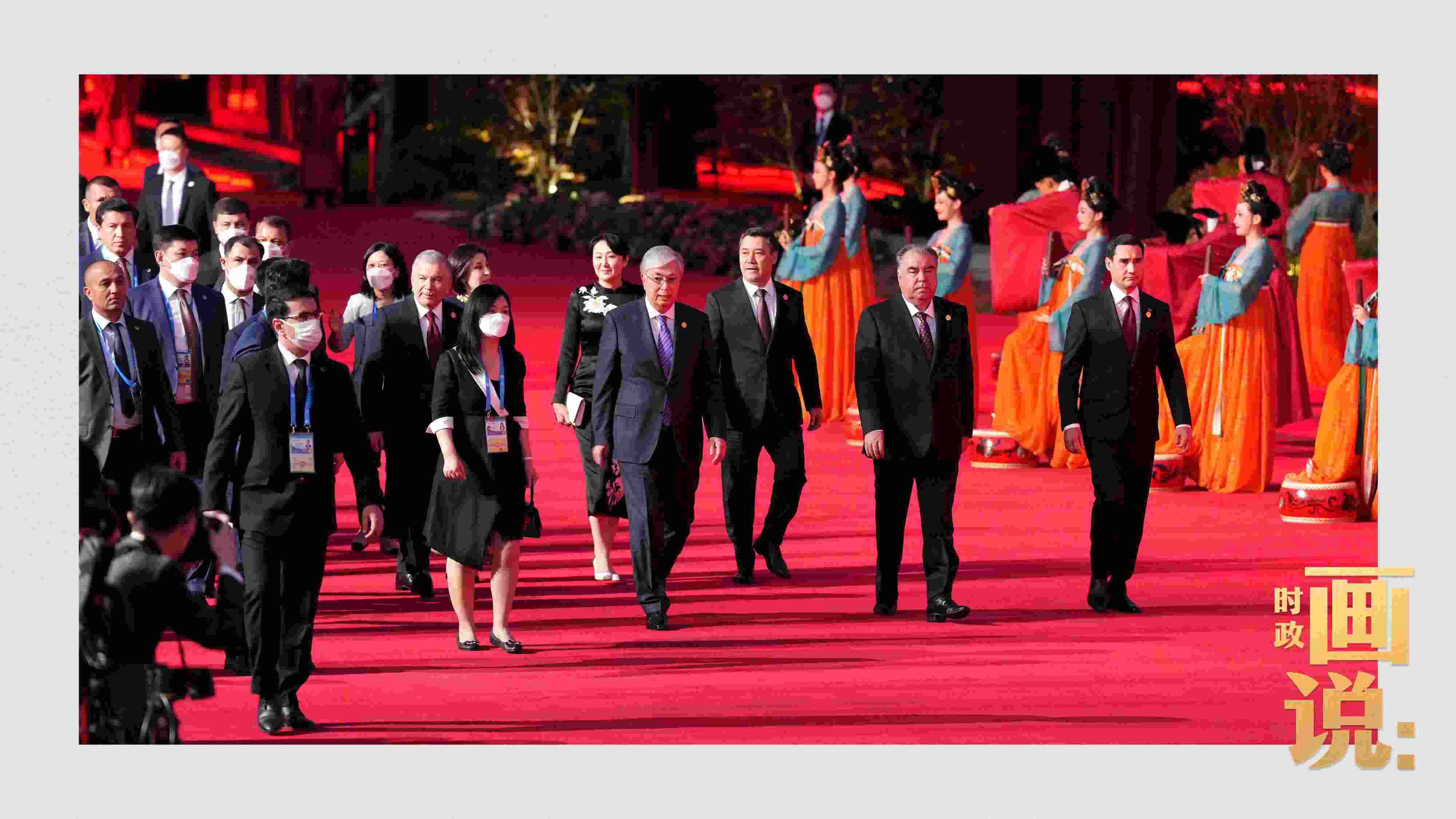 國家主席習(xí)近平和夫人彭麗媛5月18日晚在西安大唐芙蓉園舉行儀式,歡迎出席中國-中亞峰會的中亞五國領(lǐng)導(dǎo)人和夫人。