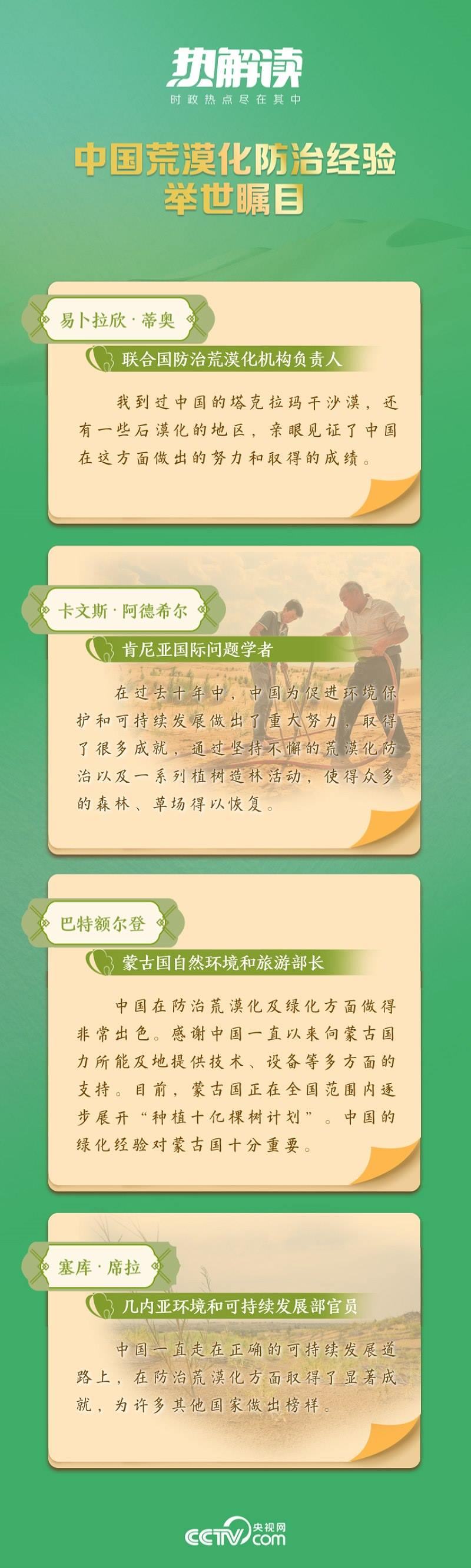 從“荒漠化防治是人類功在當代、利在千秋的偉大事業(yè)”,到“防治荒漠化是人類面臨的共同挑戰(zhàn),需要國際社會攜手應(yīng)對”,再到“堅持系統(tǒng)觀念,扎實推進山水林田湖草沙一體化保護和系統(tǒng)治理”……在習近平生態(tài)文明思想指引下,中國積極行動,形成了政府主導(dǎo)、全民參與、科技支撐、法規(guī)保障的治沙模式,取得了顯著成效。
