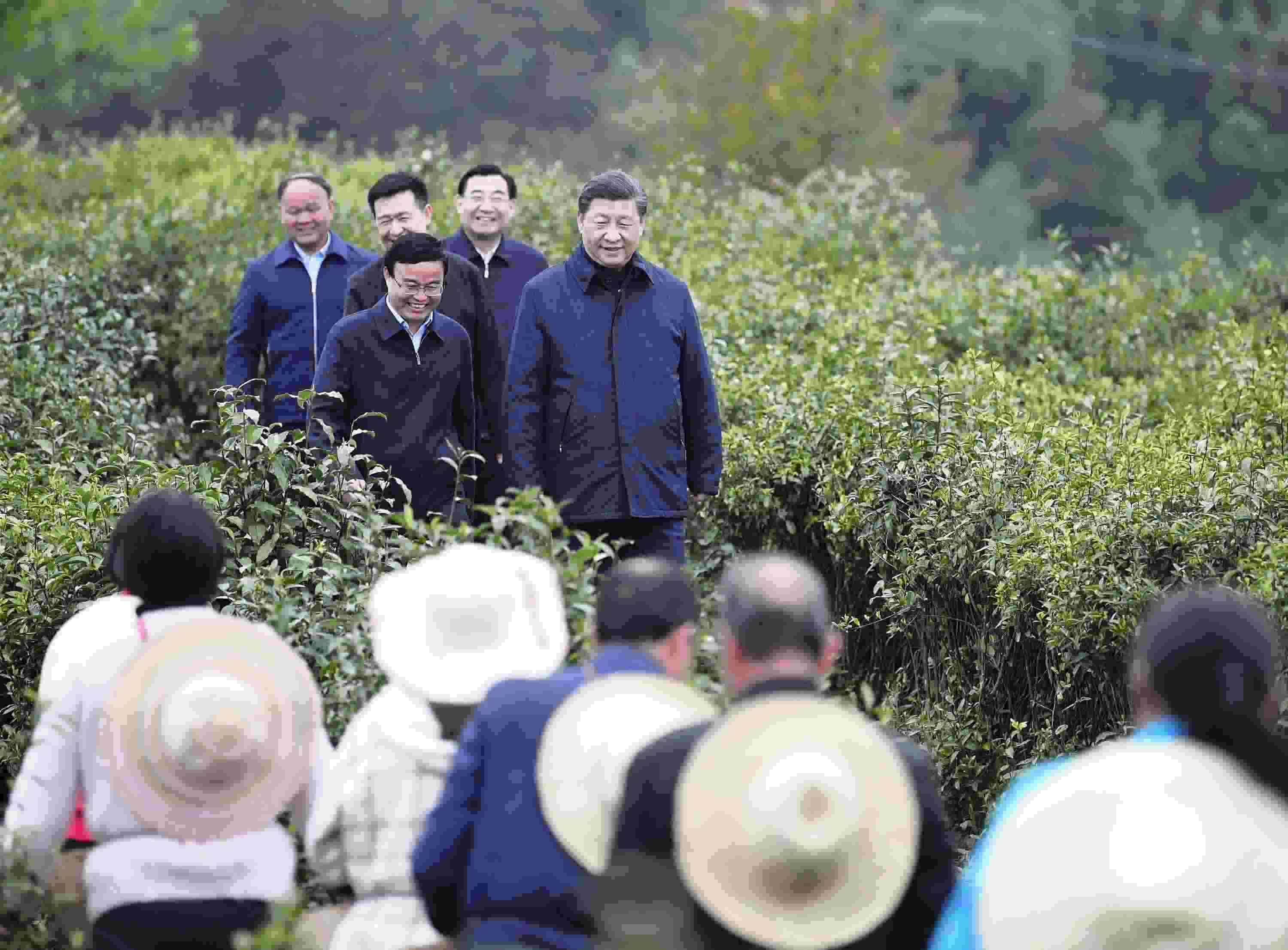 2020年4月21日,習(xí)近平總書記來到陜西省安康市平利縣老縣鎮(zhèn),在茶園考察脫貧攻堅情況。