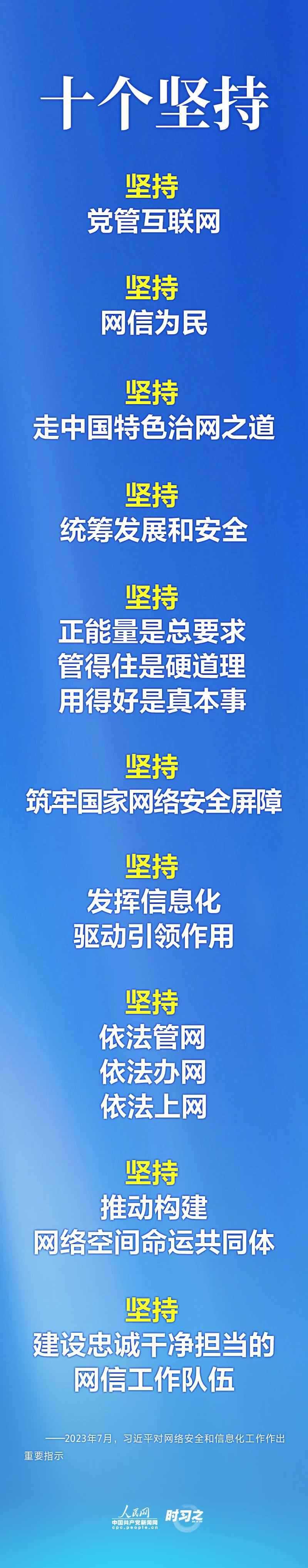 習(xí)近平總書記近日對網(wǎng)絡(luò)安全和信息化工作作出重要指示,鮮明提出網(wǎng)信工作“舉旗幟聚民心、防風(fēng)險(xiǎn)保安全、強(qiáng)治理惠民生、增動能促發(fā)展、謀合作圖共贏”的使命任務(wù),明確“十個(gè)堅(jiān)持”重要原則,并對網(wǎng)信工作提出要求,為新時(shí)代新征程網(wǎng)絡(luò)強(qiáng)國建設(shè)提供了行動指南。