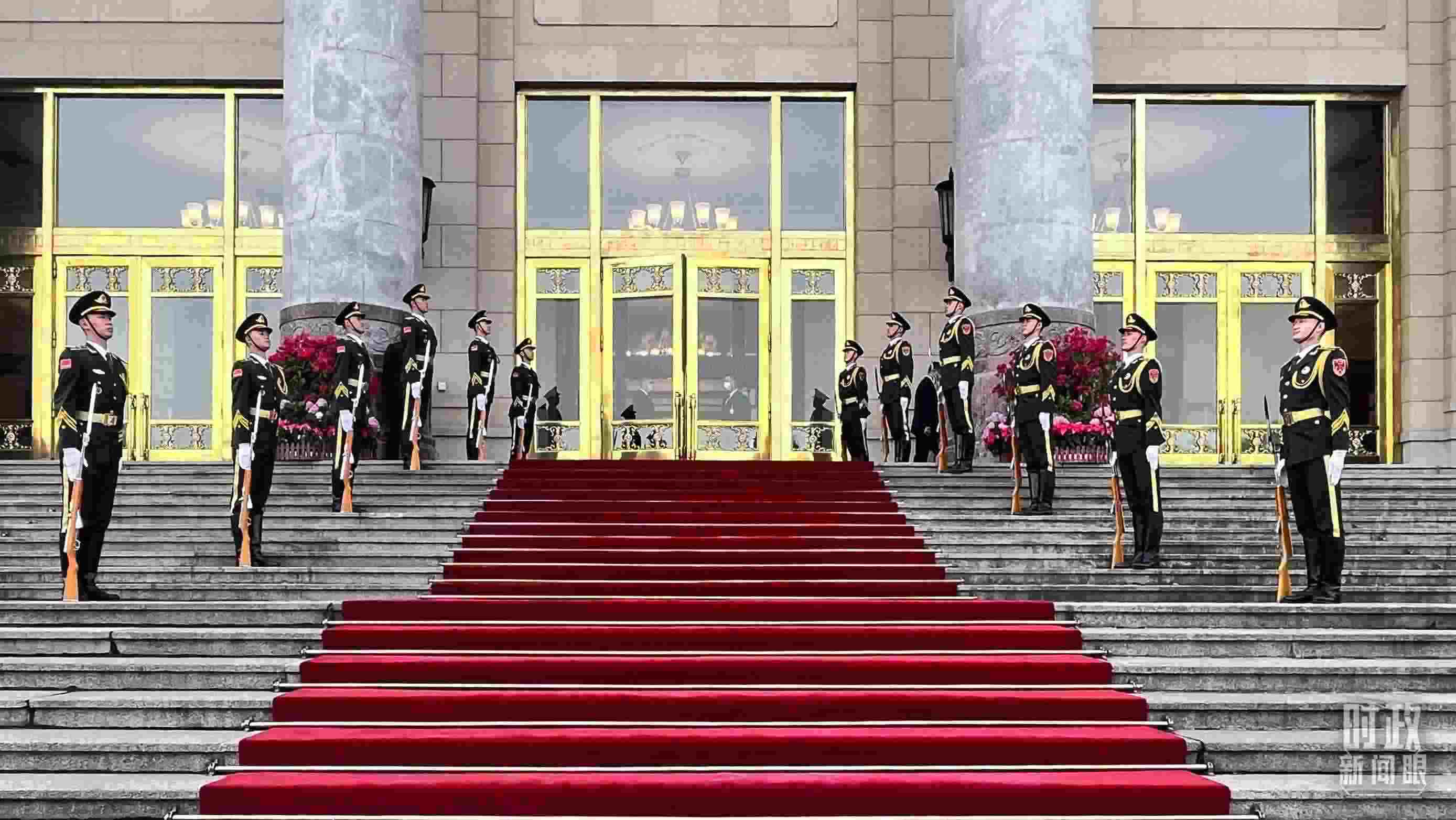 △ 2023年10月17日至20日,習近平主席在北京人民大會堂密集會見了26位外方領導人。圖為禮兵列隊迎接貴賓。(總臺央視記者張垚拍攝)