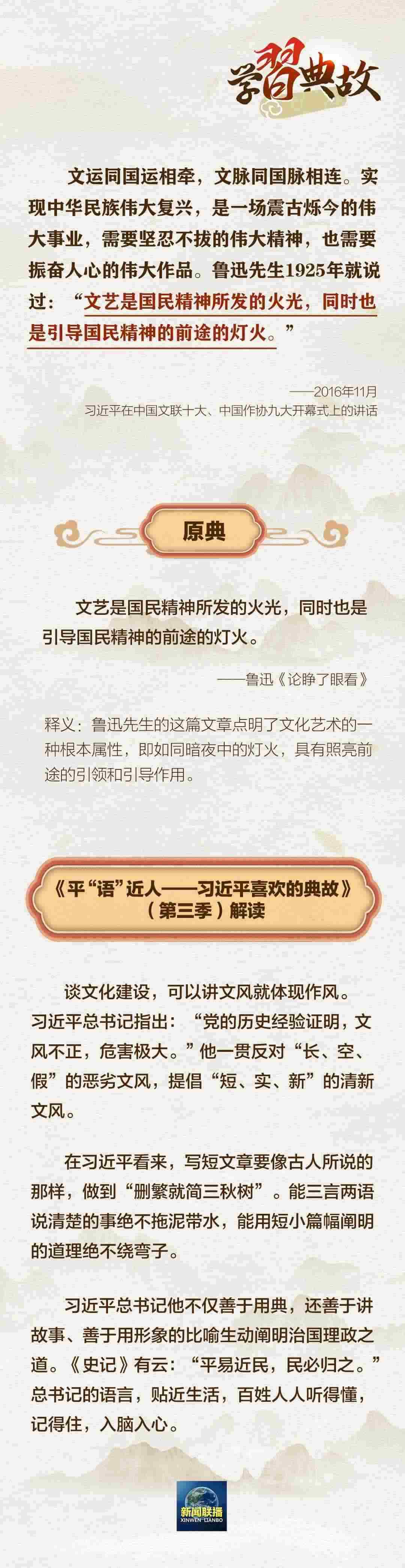 文運(yùn)同國運(yùn)相牽,文脈同國脈相連。文化自信是一個(gè)國家、一個(gè)民族發(fā)展中,最基本、最深沉、最持久的力量。黨的二十大報(bào)告中指出:“全面建設(shè)社會(huì)主義現(xiàn)代化國家,必須堅(jiān)持中國特色社會(huì)主義文化發(fā)展道路?!眹@“文化建設(shè)”這一主題,總書記曾講到哪些典故?一起學(xué)習(xí)↓↓↓