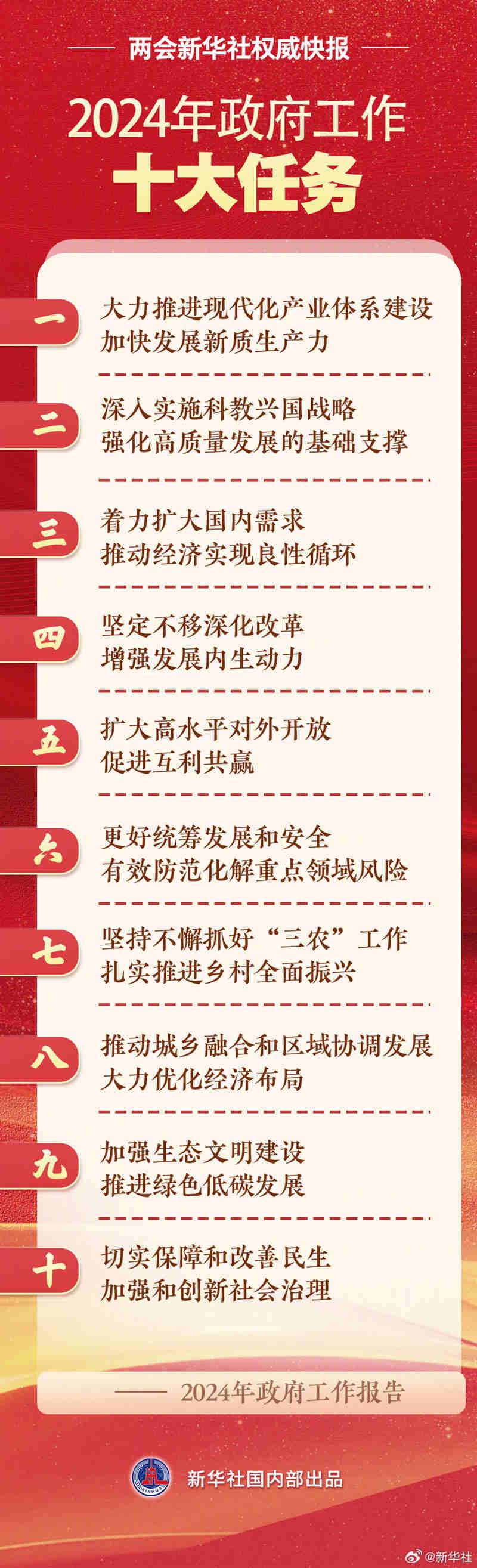 兩會(huì)新華社權(quán)威快報(bào)丨2024年政府工作十大任務(wù)