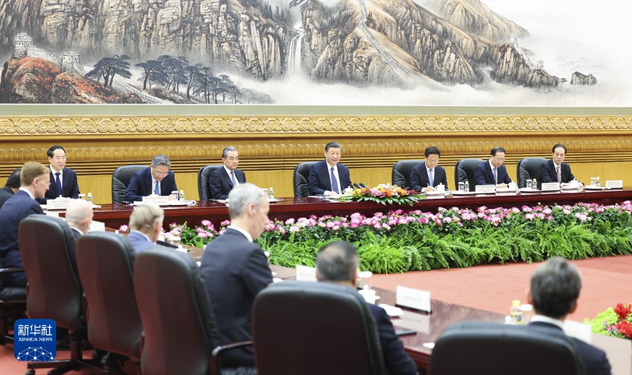 ??3月27日,國家主席習近平在北京人民大會堂集體會見美國工商界和戰(zhàn)略學術界代表。新華社記者 申宏 攝