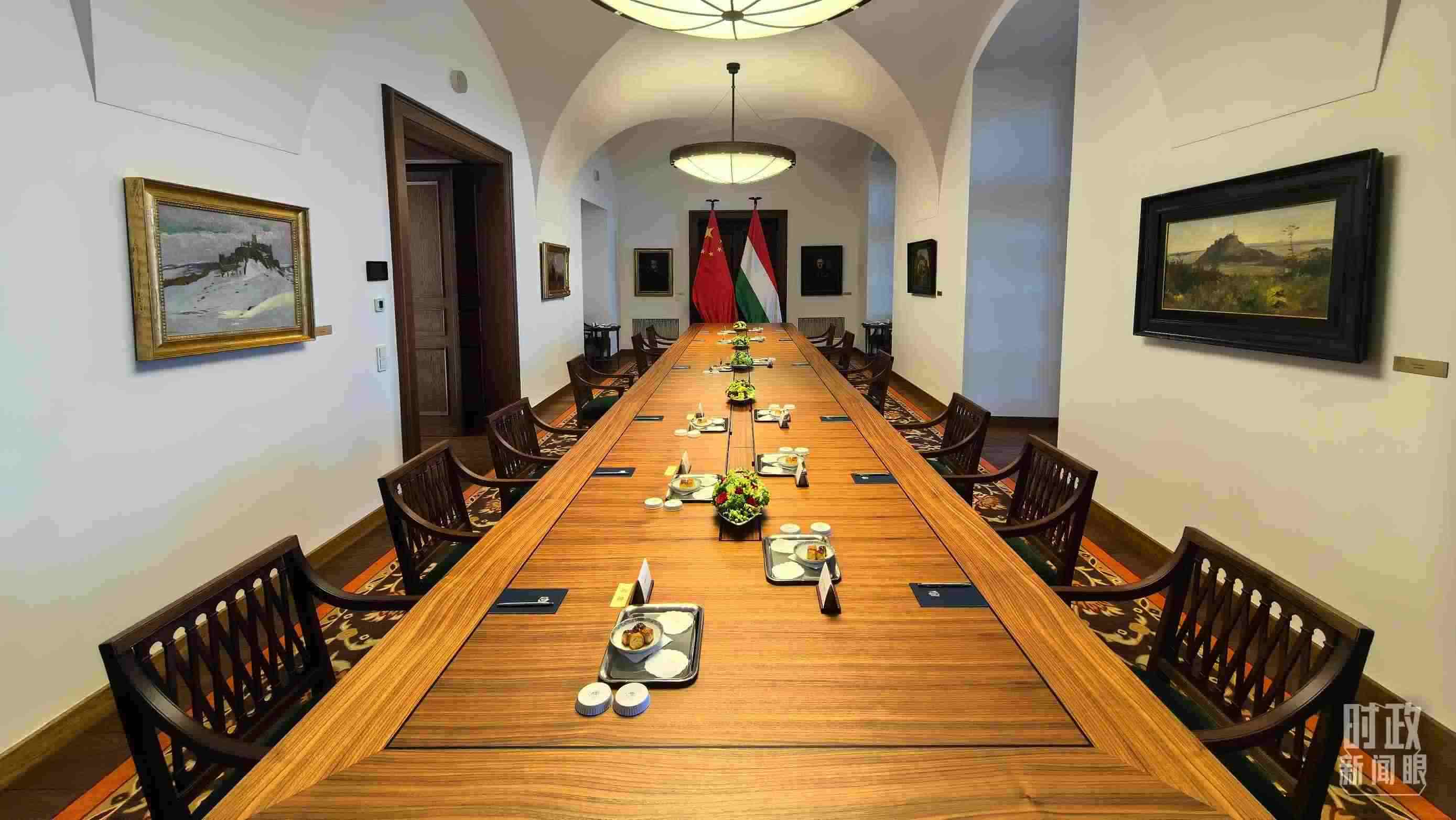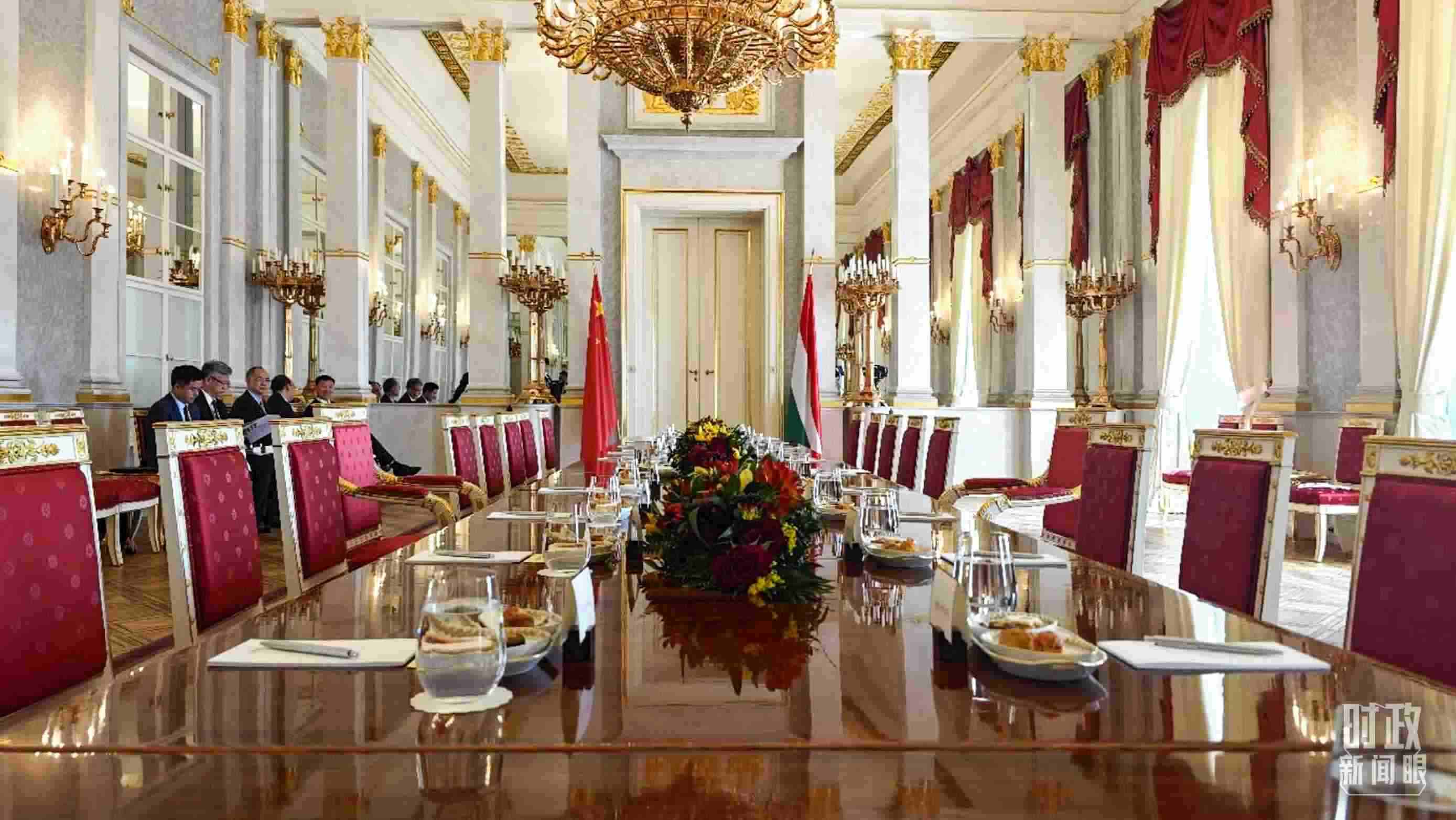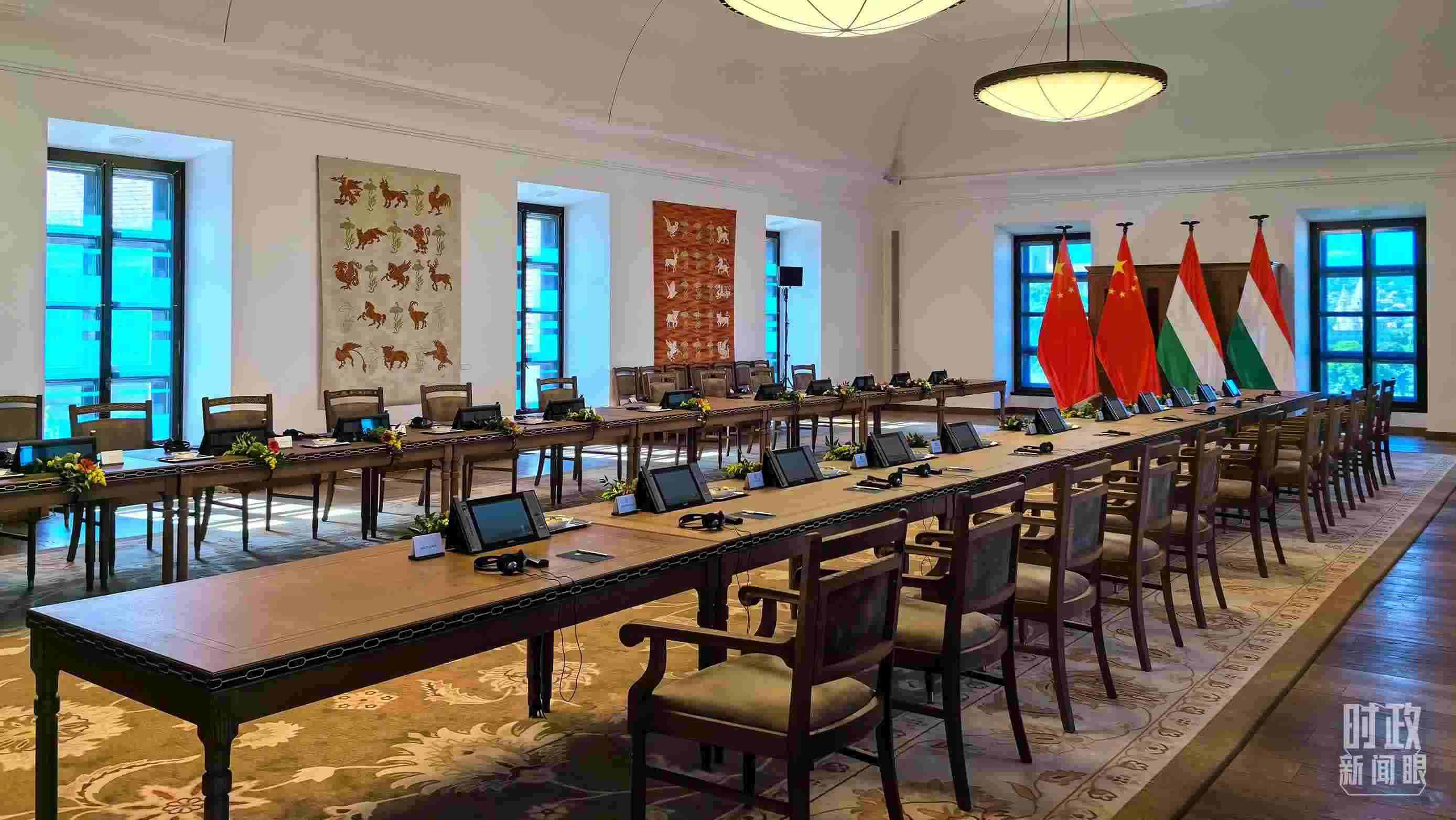 △習(xí)主席和歐爾班總理在這里舉行大范圍會(huì)談。這是會(huì)談開(kāi)始前的現(xiàn)場(chǎng)。(總臺(tái)央視記者陸泓宇拍攝)