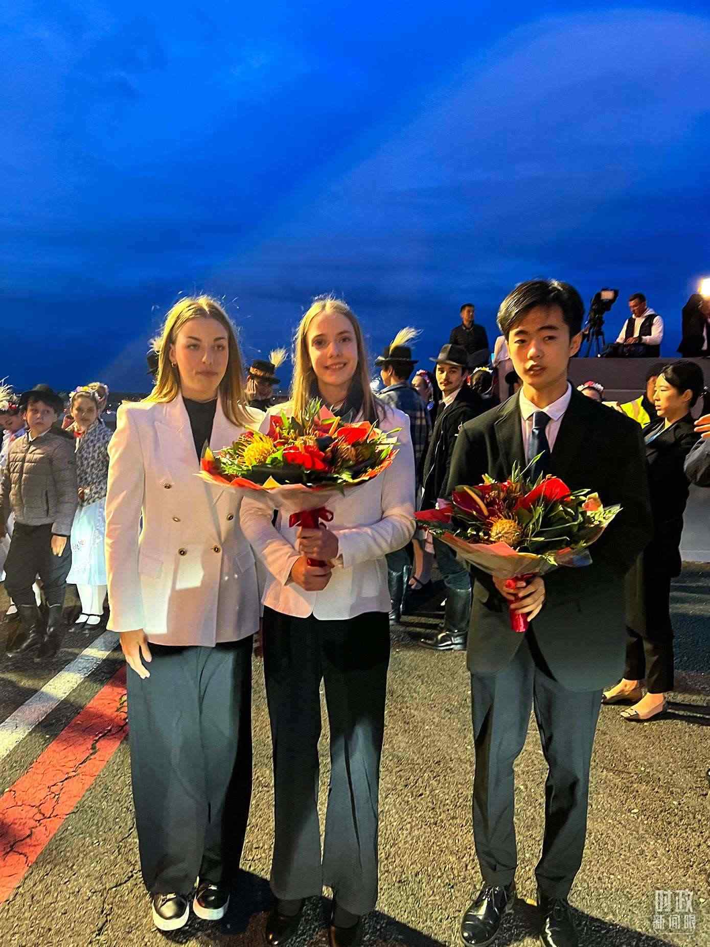 △15年前給習(xí)近平獻(xiàn)花的女孩童滿(左一)。(總臺(tái)央視記者石偉明拍攝)