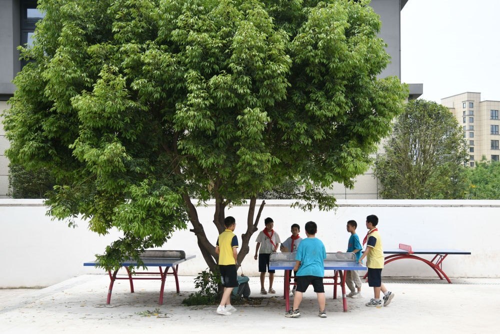 5月31日,學(xué)生在打乒乓球。