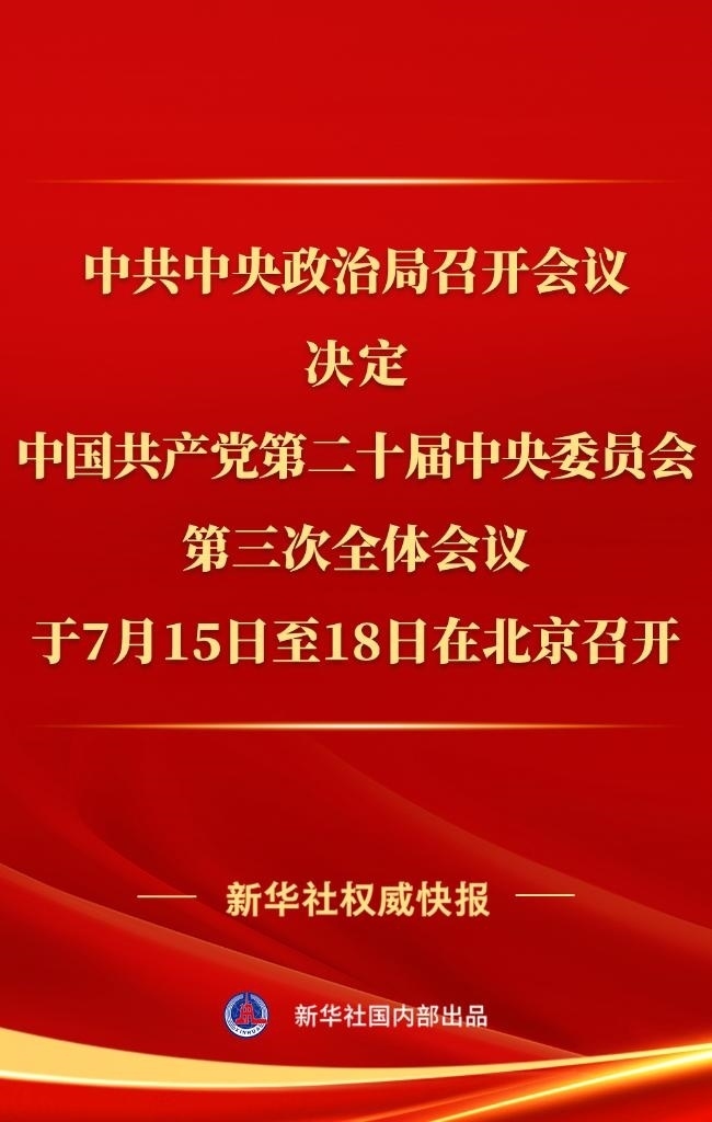 中共中央政治局6月27日召開會議,研究進一步全面深化改革、推進中國式現(xiàn)代化問題。中共中央總書記習(xí)近平主持會議。會議決定,中國共產(chǎn)黨第二十屆中央委員會第三次全體會議于7月15日至18日在北京召開。