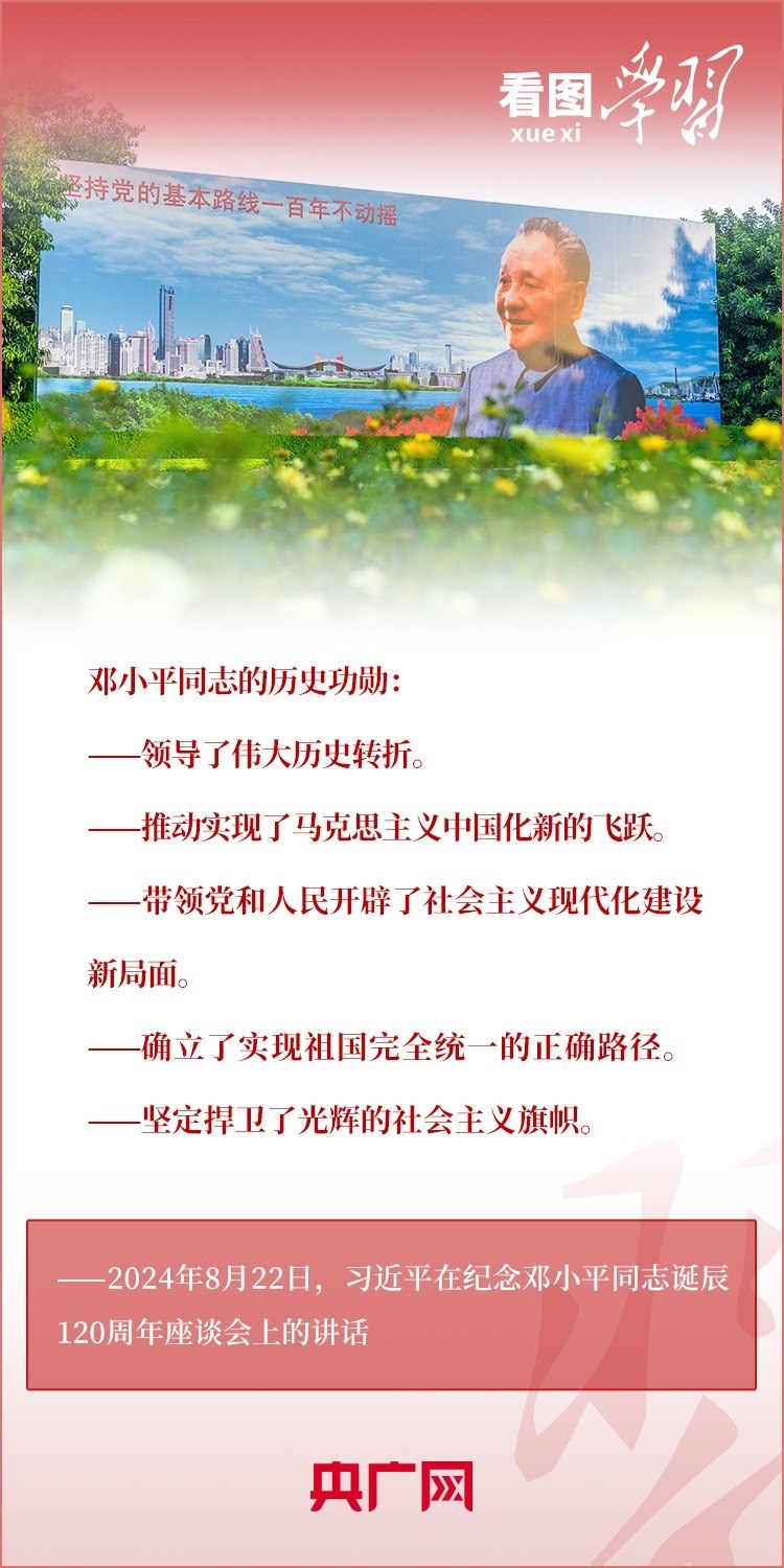 8月22日,習近平總書記在紀念鄧小平同志誕辰120周年座談會上發(fā)表重要講話指出,鄧小平同志的歷史功勛是全方位的、開創(chuàng)性的,對中國和世界的影響是深刻的、長遠的??倳洀娬{,對鄧小平同志最好的紀念,就是把他開創(chuàng)的中國特色社會主義事業(yè)繼續(xù)推向前進。我們要緊緊圍繞以中國式現(xiàn)代化全面推進強國建設、民族復興偉業(yè)這個中心任務,繼往開來,奮發(fā)進取。一起來學習!
