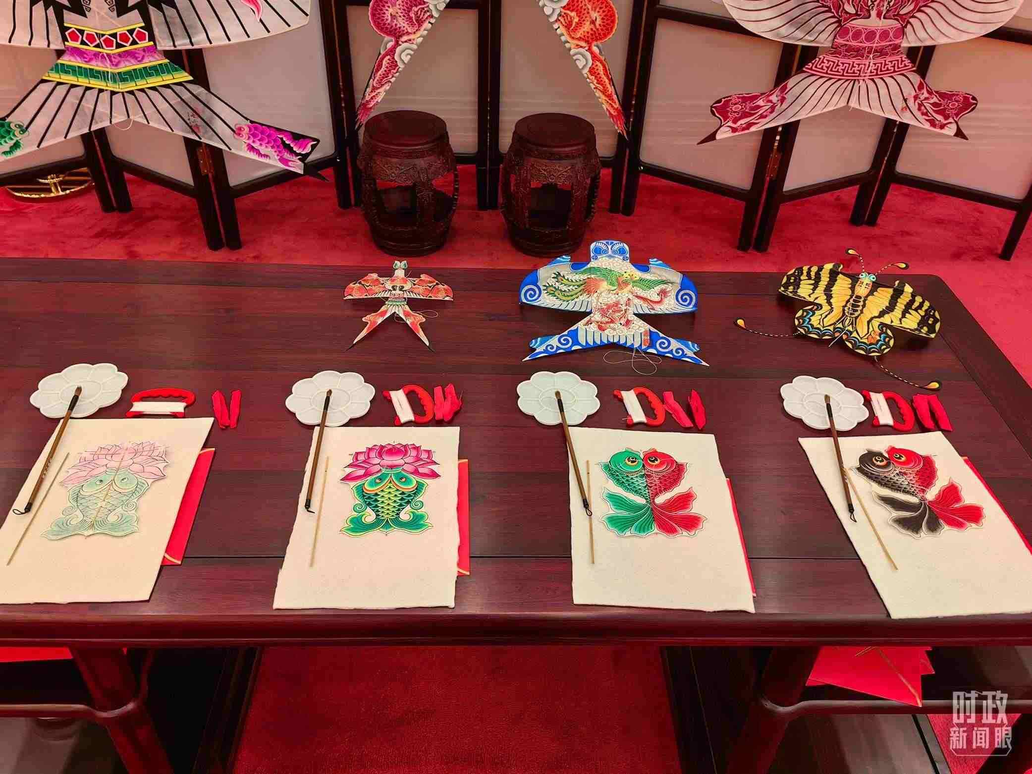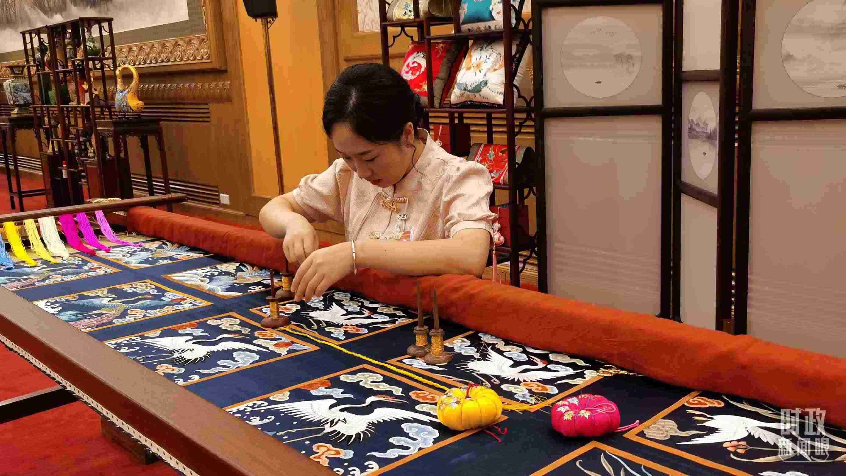 △外賓休息室內(nèi)的非遺展示。(總臺央視記者王曉東、郭鴻拍攝)