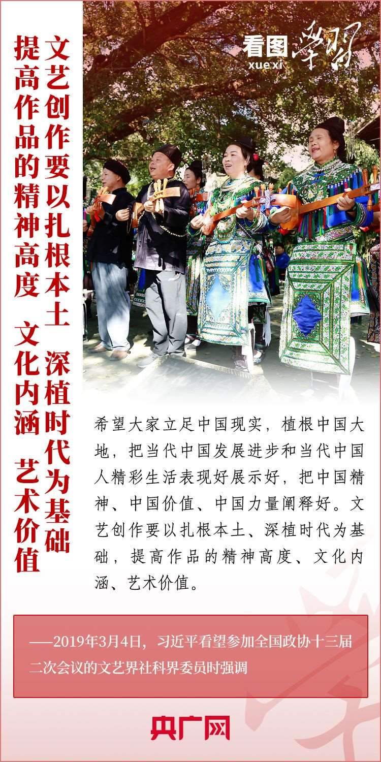十年來(lái),我國(guó)廣大文藝工作者深入生活、扎根人民,創(chuàng)作出一大批彰顯中國(guó)精神、體現(xiàn)人文關(guān)懷、富有藝術(shù)創(chuàng)新力的優(yōu)質(zhì)文藝作品,努力用豐富多彩的文藝精品滿足人們對(duì)精神文化生活的需求。如何創(chuàng)作出更多無(wú)愧于時(shí)代、無(wú)愧于人民的優(yōu)秀作品?讓我們一起深刻領(lǐng)悟總書(shū)記的“文藝觀”。