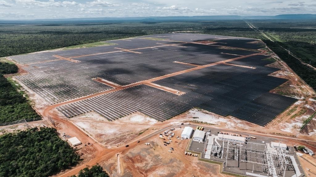 這是2024年6月7日在巴西皮奧伊州拍攝的由中國國家電力投資集團公司(國家電投)巴西公司投資并主導(dǎo)建設(shè)的馬蘭加圖光伏電站(無人機照片)。新華社記者 王天聰 攝