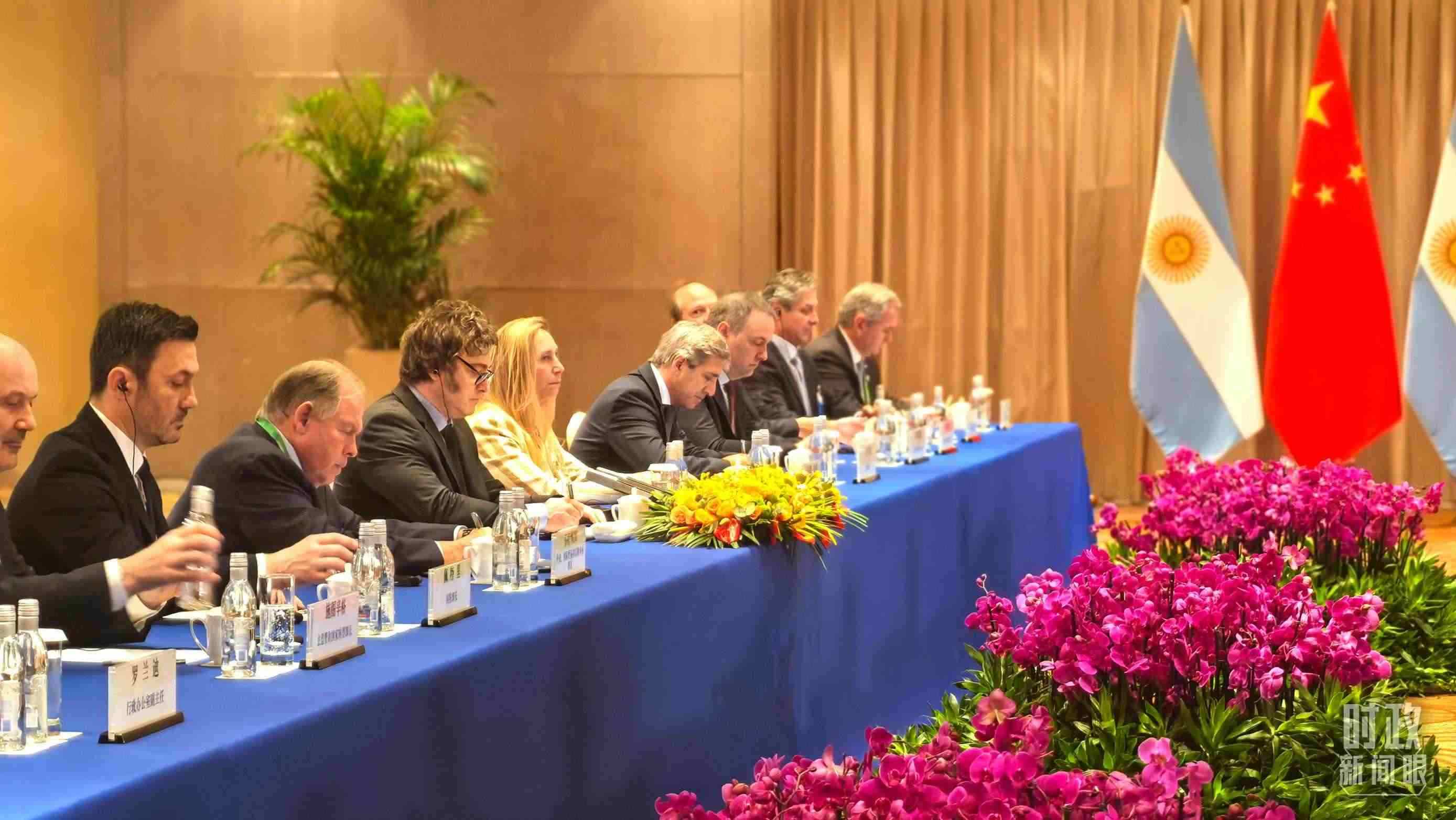 △習(xí)主席會見阿根廷總統(tǒng)米萊現(xiàn)場。(總臺央廣記者潘毅拍攝)