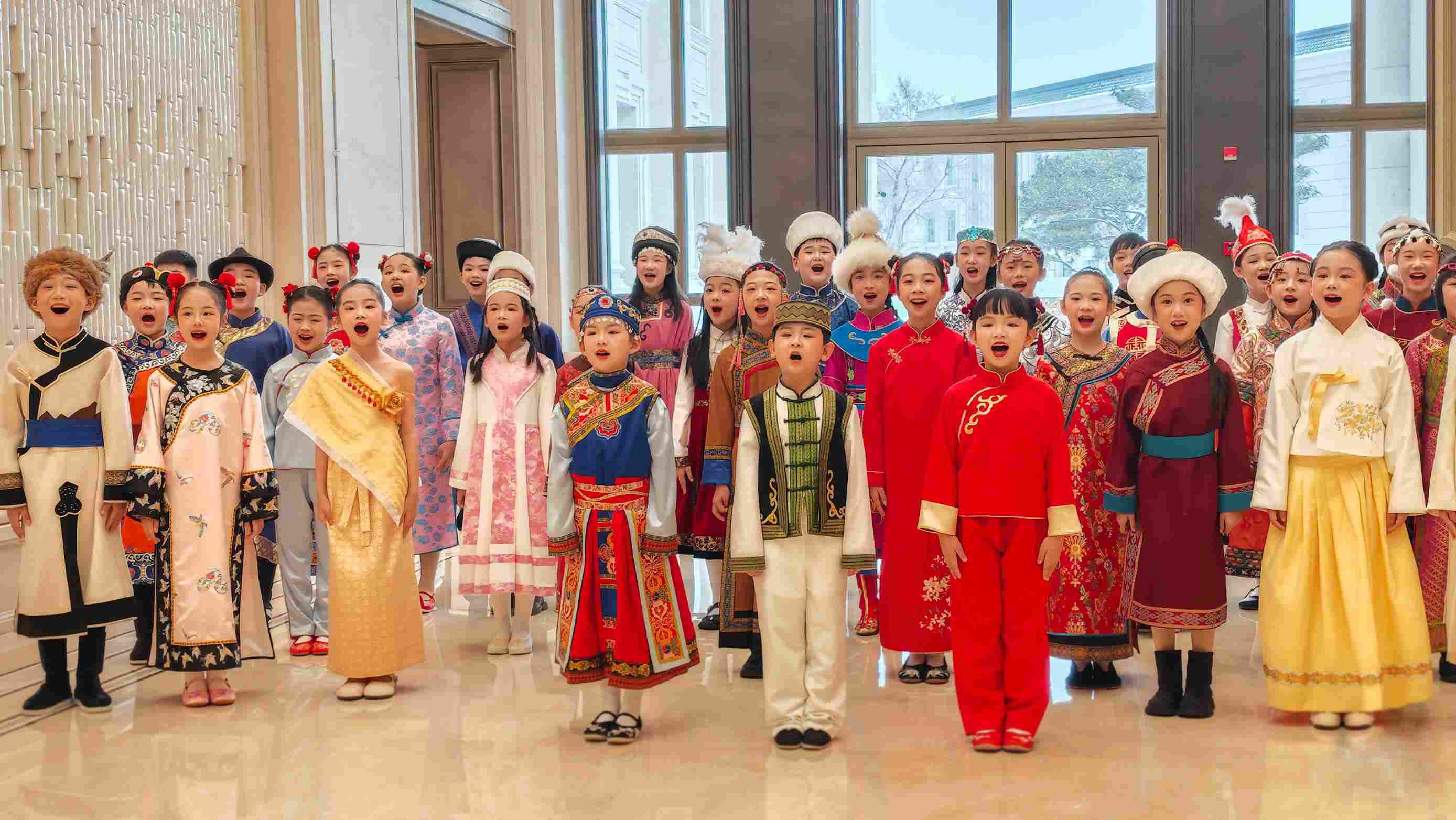 △第九屆亞冬會(huì)開幕式歡迎宴會(huì)現(xiàn)場(chǎng),少年兒童表演民歌《烏蘇里船歌》。