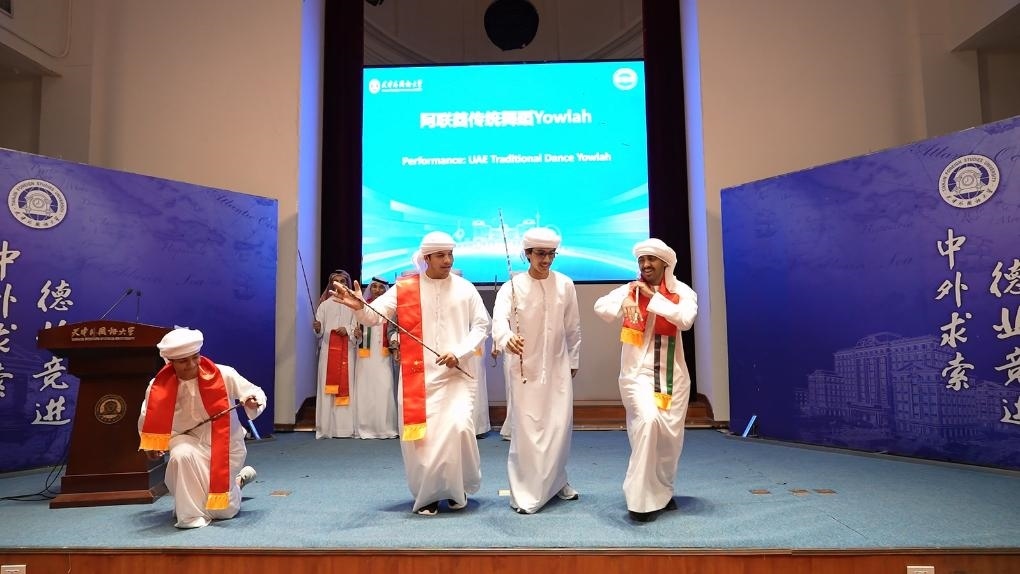 天津外國語大學(xué)的校園里,海棠盛開,綠意盎然。在此次交流學(xué)習(xí)項(xiàng)目的開班儀式上,中阿兩國學(xué)生代表以精彩演出互致青春問候:中國民族樂器齊奏《云之南》、中阿雙語演唱《我們都一樣》、節(jié)奏明快的阿聯(lián)酋傳統(tǒng)舞蹈點(diǎn)燃活動(dòng)現(xiàn)場……