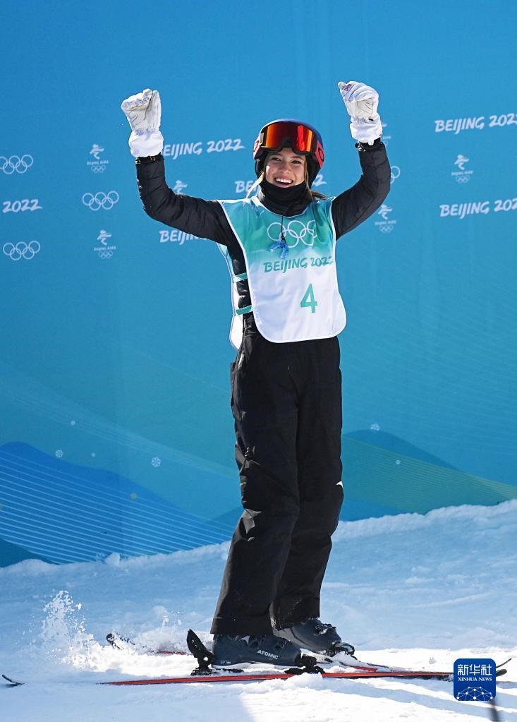 2月7日,中國(guó)選手谷愛(ài)凌在比賽后慶祝。