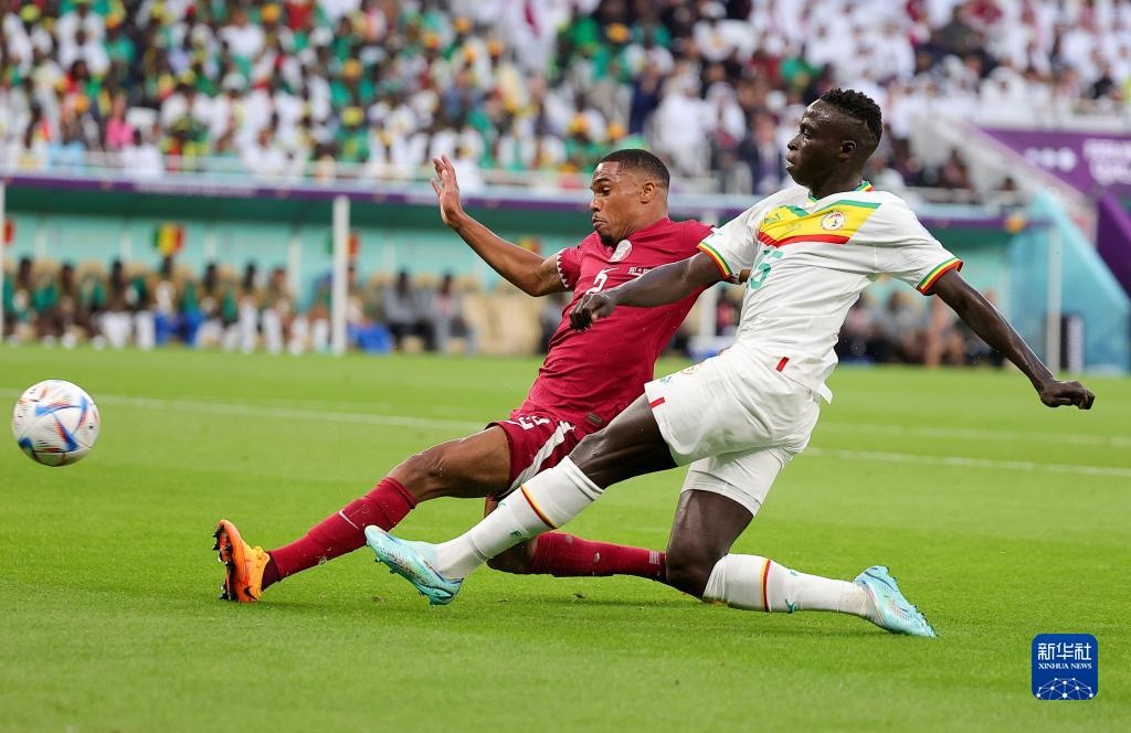 易邊再戰(zhàn),卡塔爾隊(duì)再遭重創(chuàng)。開場僅3分鐘,迪德希歐利用角球機(jī)會(huì),搶前點(diǎn)頭球破門,塞內(nèi)加爾隊(duì)2:0領(lǐng)先??ㄋ栮?duì)如夢方醒,開始在主場觀眾的助威聲中組織反擊。第62分鐘,阿里在弧頂一腳兜射直奔球門左下角,不過塞內(nèi)加爾門將門迪做出精彩撲救,橫身將球擋出。這也是卡塔爾在本屆世界杯上第一腳打在門框范圍內(nèi)的射門。