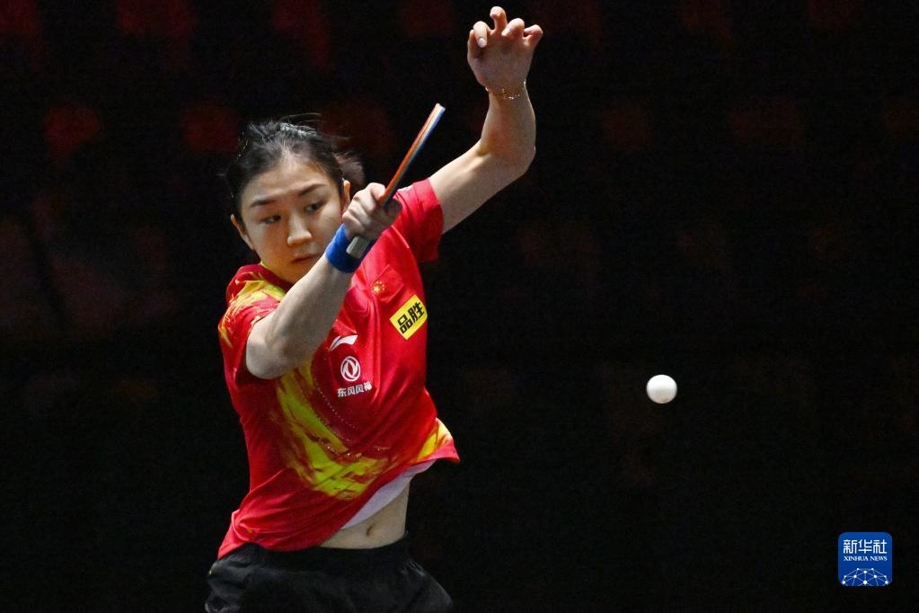 3月13日,陳夢(mèng)在比賽中回球。新華社發(fā)(鄧智煒攝)
