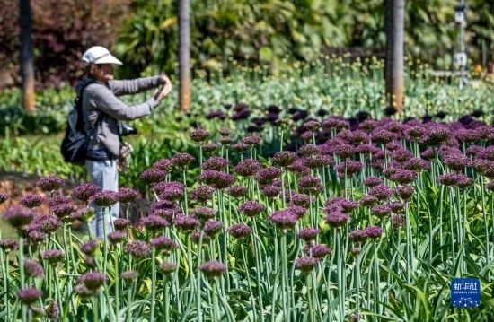 近日,昆明植物園中烏全球蔥園(昆明中心)內(nèi)的近十個(gè)品種、6000余株觀賞蔥屬植物逐漸迎來盛花期,吸引游客前來觀光。據(jù)了解,蔥屬植物具有重要的經(jīng)濟(jì)利用價(jià)值,許多種類被人類作為食用、藥用和觀賞植物進(jìn)行了長(zhǎng)期的栽培利用。