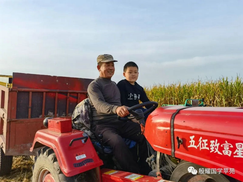父親讓曈曈接地氣的愿望實現(xiàn)了,長得越來越壯實的曈曈真是打心眼喜歡上了農村,喜歡看叔叔大爺們是如何勞動的。春天澆地的時候,他跟上我的發(fā)小利利到地里去,手里拿上一張鐵鍬學著去攏堰堤;秋收的時候他爬上了丁補元駕駛的收割機,感受農民們收割玉米的喜悅;接羔的時候,他又鉆進利軍家的羊群里,抱著出生沒有幾天的小羊羔,給小羊羔喂牛奶……春節(jié)前的一兩天是他最忙的時候:一會跟上大爹貼春聯(lián),一會跟上茹義大爺掛紅燈,忙得不亦樂乎。前一段時間回村里他又要跟上利軍大爺出村放羊去,又要跟上茹義大爺去種玉米,在城里他是見識不到這些的。