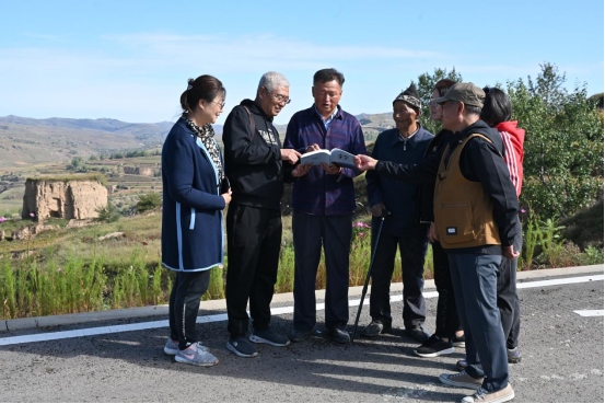 為了助推清水河縣全力推進(jìn)長城國家文化公園項(xiàng)目建設(shè),呼和浩特市長城科普學(xué)會(huì)會(huì)員們到達(dá)馬頭山下的小元峁段明長城、川峁村鴻門口馬市遺址、水泉鎮(zhèn)紅(鴻)門口地下長城博物館后,顧不得旅途勞頓和登山困乏,立即開展考察工作、拍照、察看、比對(duì)、討論,將學(xué)會(huì)出版的《長城烽火》《中國歷代長城詩大全》《情系長城》等書籍贈(zèng)送給水泉鎮(zhèn)政府,為智庫專家高振清贈(zèng)送聘書,聽他講解鴻門口的歷史。
