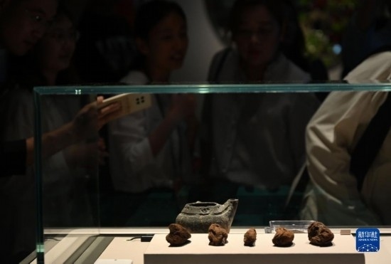 9月1日,嘉賓參觀浙江余姚田螺山遺址出土的人工種植茶樹(shù)根。