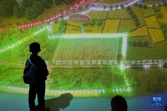 10月19日,在2023成都世界科幻大會主題展覽上,參觀者觀看宣漢羅家壩遺址視頻投影。