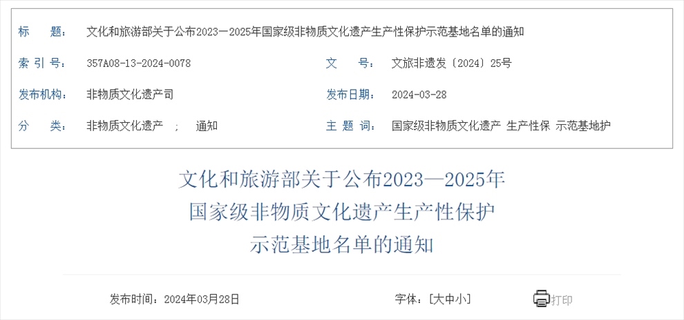 記者3月28日從文化和旅游部獲悉,在各地推薦的基礎(chǔ)上,經(jīng)過專家評審、實地考察和社會公示等程序,文化和旅游部近日認定99家企業(yè)和單位為2023—2025年國家級非物質(zhì)文化遺產(chǎn)生產(chǎn)性保護示范基地。
