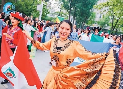 中外學(xué)生身著民族服飾載歌載舞,活動參加者現(xiàn)場體驗絲網(wǎng)印刷、水拓工藝……日前,北京語言大學(xué)第十九屆世界文化節(jié)游園會舉辦。來自103個國家和地區(qū)的青年及社會各界人士同聚北語,感受文化交融的魅力。