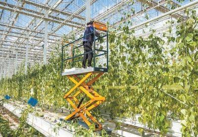 在吉林卓遠(yuǎn)農(nóng)業(yè)發(fā)展有限公司,工作人員利用無土栽培技術(shù),在室內(nèi)培育蔬菜。