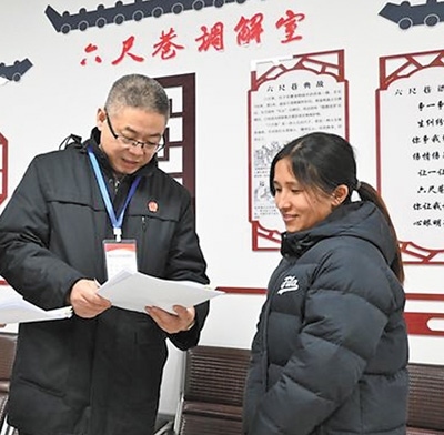 桐城市“六尺巷調(diào)解室”里,法院法官在為居民解決問(wèn)題。高 明攝