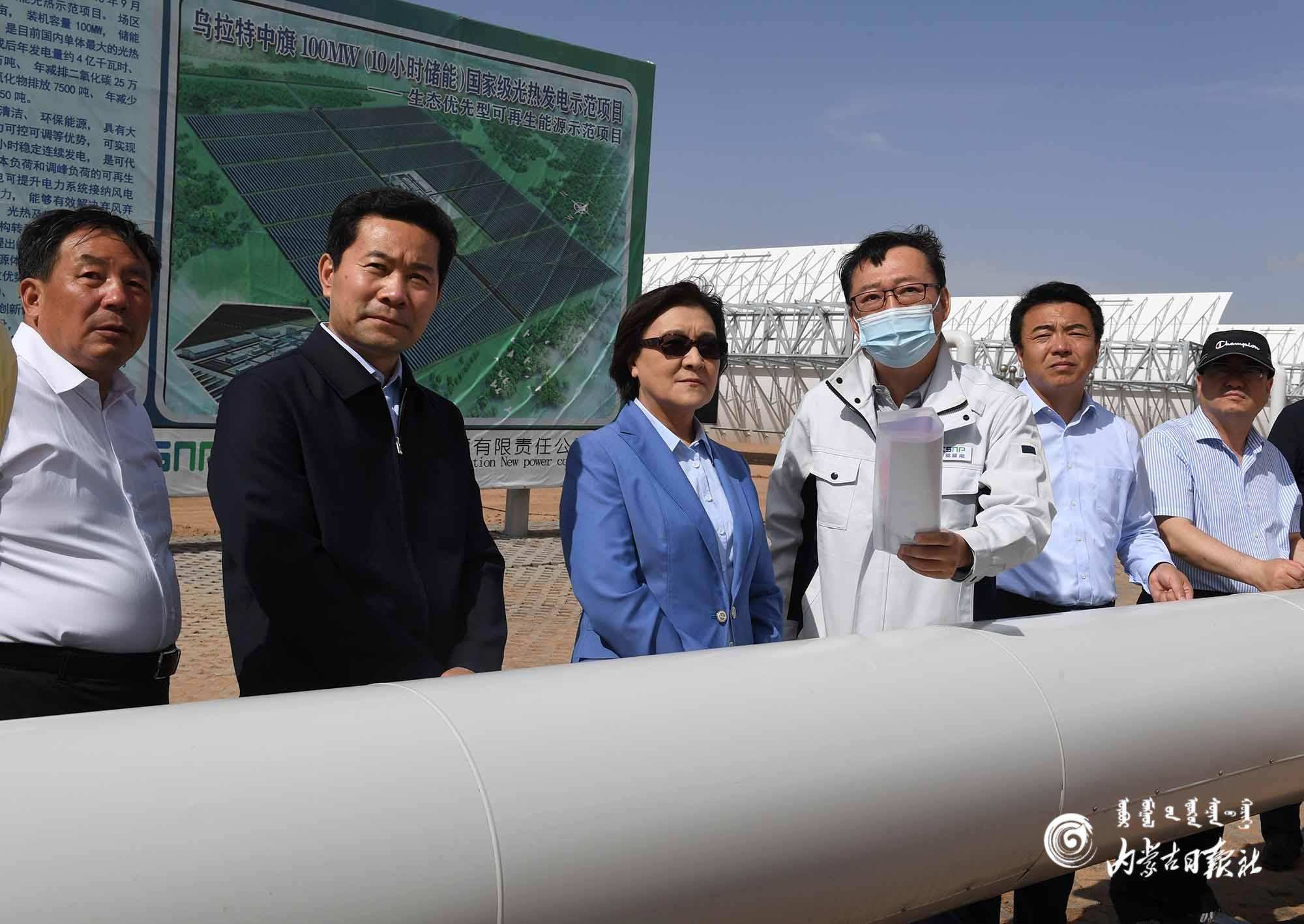 6月8日,自治區(qū)黨委副書記、自治區(qū)主席布小林在巴彥淖爾市烏拉特中旗中核龍騰100兆瓦(10小時(shí)儲(chǔ)能)光熱發(fā)電示范項(xiàng)目施工現(xiàn)場(chǎng)調(diào)研,了解項(xiàng)目建設(shè)進(jìn)度。內(nèi)蒙古日?qǐng)?bào)社融媒體記者 韓卿立攝