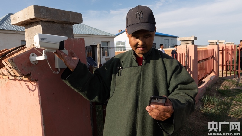 現(xiàn)在很多牧民家門口還多了360度高清攝像頭,蘇尼爾家有3000多畝草場,無論他在哪,點(diǎn)開手機(jī)里一款云視頻app,就可以查看草場的每一個角落。