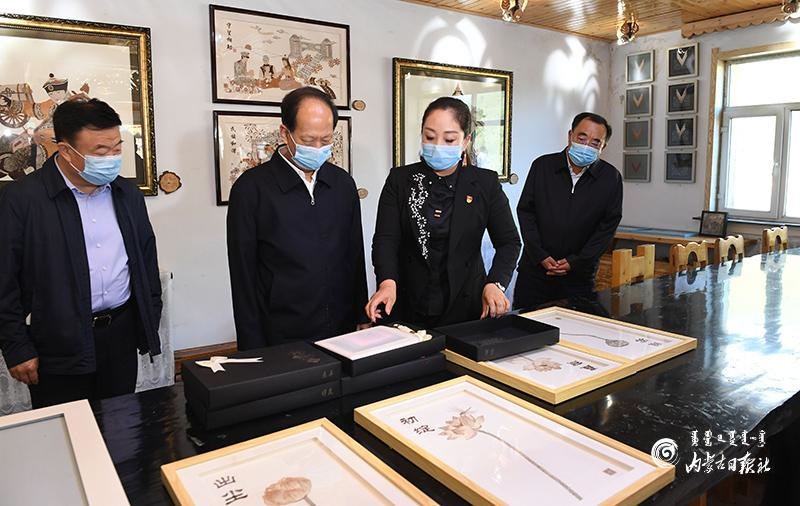 8月10日,自治區(qū)黨委書記、人大常委會(huì)主任石泰峰來到興安盟阿爾山市白狼鎮(zhèn)林俗文化產(chǎn)業(yè)發(fā)展有限公司,了解樹皮畫產(chǎn)業(yè)助力脫貧和非遺項(xiàng)目傳承發(fā)展情況。內(nèi)蒙古日報(bào)記者 袁永紅 攝