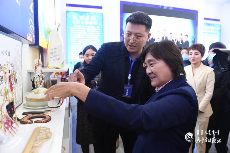 10月15日,自治區(qū)黨委副書記、自治區(qū)主席布小林參觀自治區(qū)“雙創(chuàng)”成果展。內(nèi)蒙古日?qǐng)?bào)記者 韓卿立攝