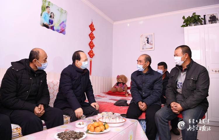 屋外白雪皚皚,屋內(nèi)爐火熊熊。石泰峰首先來到庫倫圖村脫貧戶連縻拴家,與老倆口親切交談,深入了解飲水、住房、健康等生產(chǎn)生活狀況,與他們一起細算收入賬,詢問他們對幫扶工作的滿意度,鼓勵他們堅定信心,在政策幫扶下勤勞致富。隨后,石泰峰驅(qū)車來到六道溝村,在脫貧戶孟忠忠家,與孟忠忠、胡金柱、王鎖林、韓向林、韓金龍等貧困群眾圍坐在一起嘮起家常,詳細了解“兩不愁三保障”及飲水安全、產(chǎn)業(yè)發(fā)展等情況。得知他們雖然都是因病、因殘致貧,但生產(chǎn)生活都有保障,而且不等不靠、自我發(fā)展的心勁兒很足,石泰峰說,脫貧路上一個都不能少、一戶都不能落,今年是脫貧攻堅戰(zhàn)最后一年,也是全面建成小康社會收官之年,看到你們不但脫了貧,而且信心滿滿,很有志氣和骨氣,我很放心。幸福是奮斗出來的,希望大家在政策幫扶下繼續(xù)奮斗,共同努力脫貧致富過上好日子。石泰峰要求當?shù)馗刹恳虻刂埔?、精準施策,接續(xù)推進全面脫貧與鄉(xiāng)村振興有效銜接。