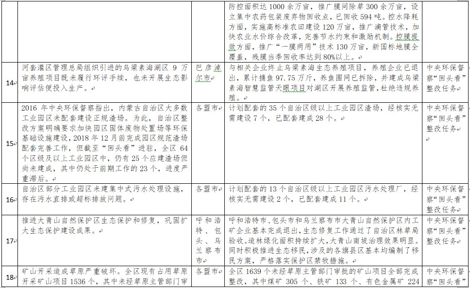 中央環(huán)境保護督察以來,自治區(qū)各級黨委政府及相關部門高度重視反饋意見整改工作,貫徹落實習近平生態(tài)文明思想的自覺性和主動性顯著增強,采取強有力措施積極推動整改工作,整改工作取得階段性成果。近期部分整改任務已通過自治區(qū)相關委辦廳局驗收,現予以公示,公示期2021年2月5日至2月9日,未提出異議的整改任務給予銷號(聯系電話:0471-4632171)。