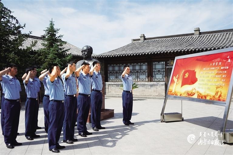 部隊(duì)官兵在烏蘭夫故居重溫入黨誓詞。