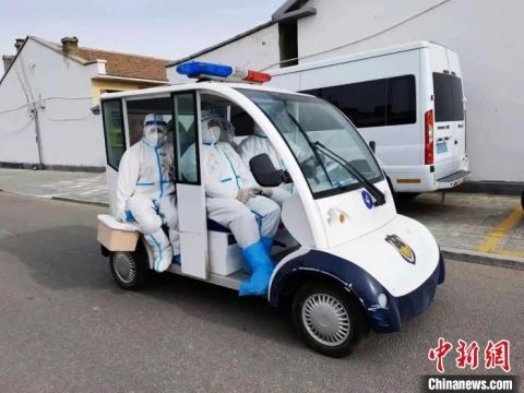 圖為為封控區(qū)人員運(yùn)送物資。 二連浩特市公安局供圖