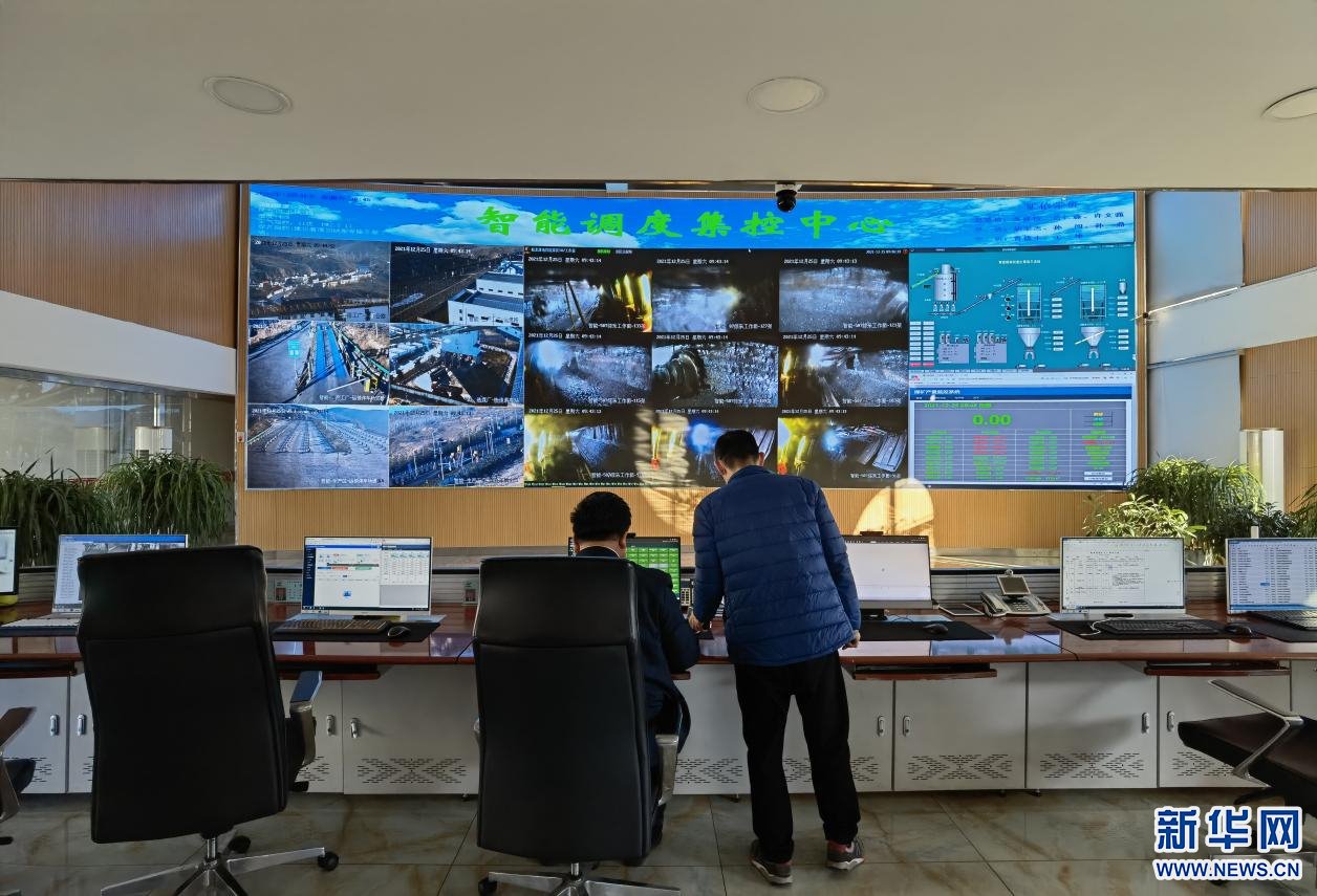 麻地梁煤礦地面智能調度集控中心的大屏幕上,可以實時查看煤礦各個生產環(huán)節(jié)的狀況。新華網(wǎng) 楊騰格爾攝